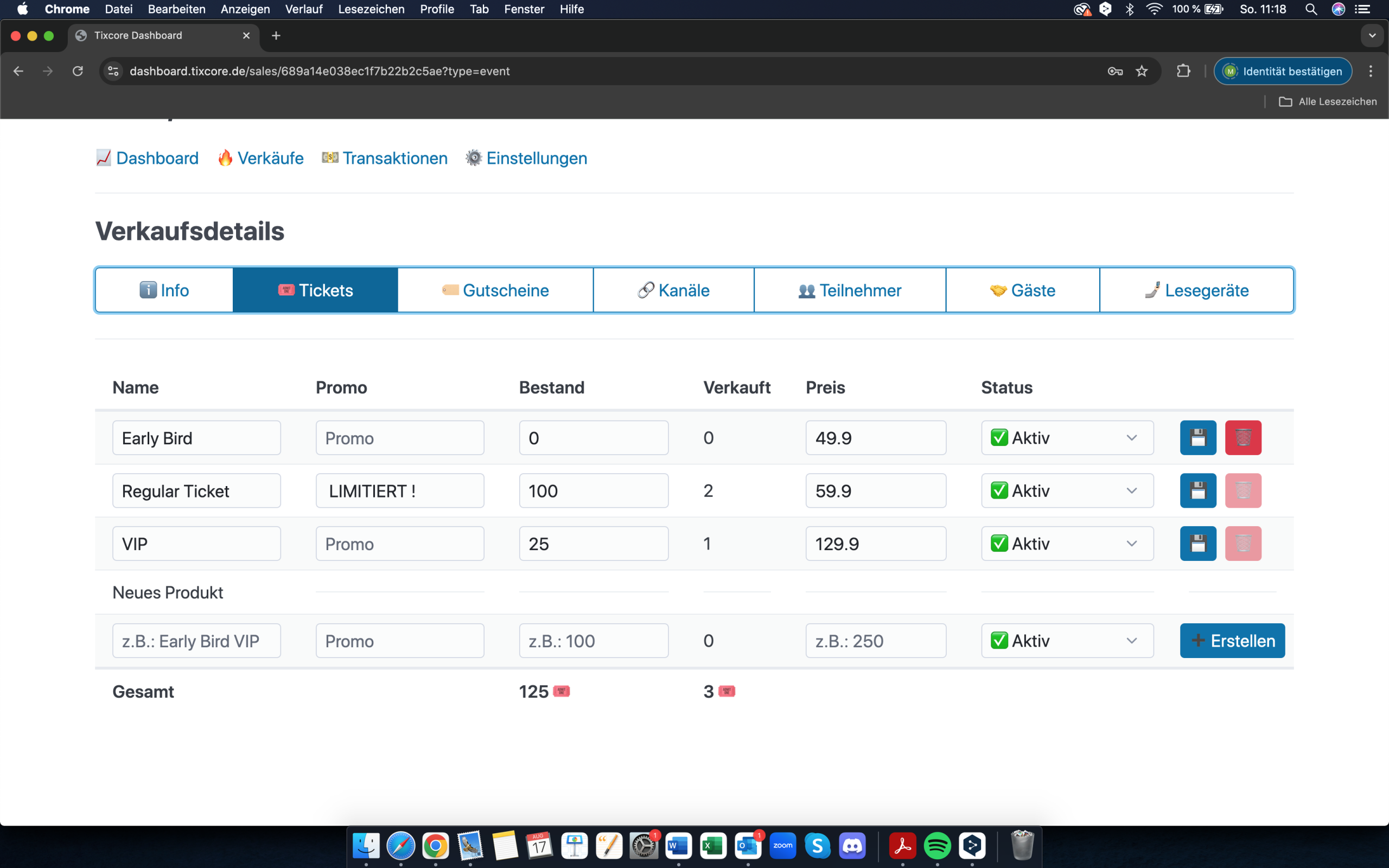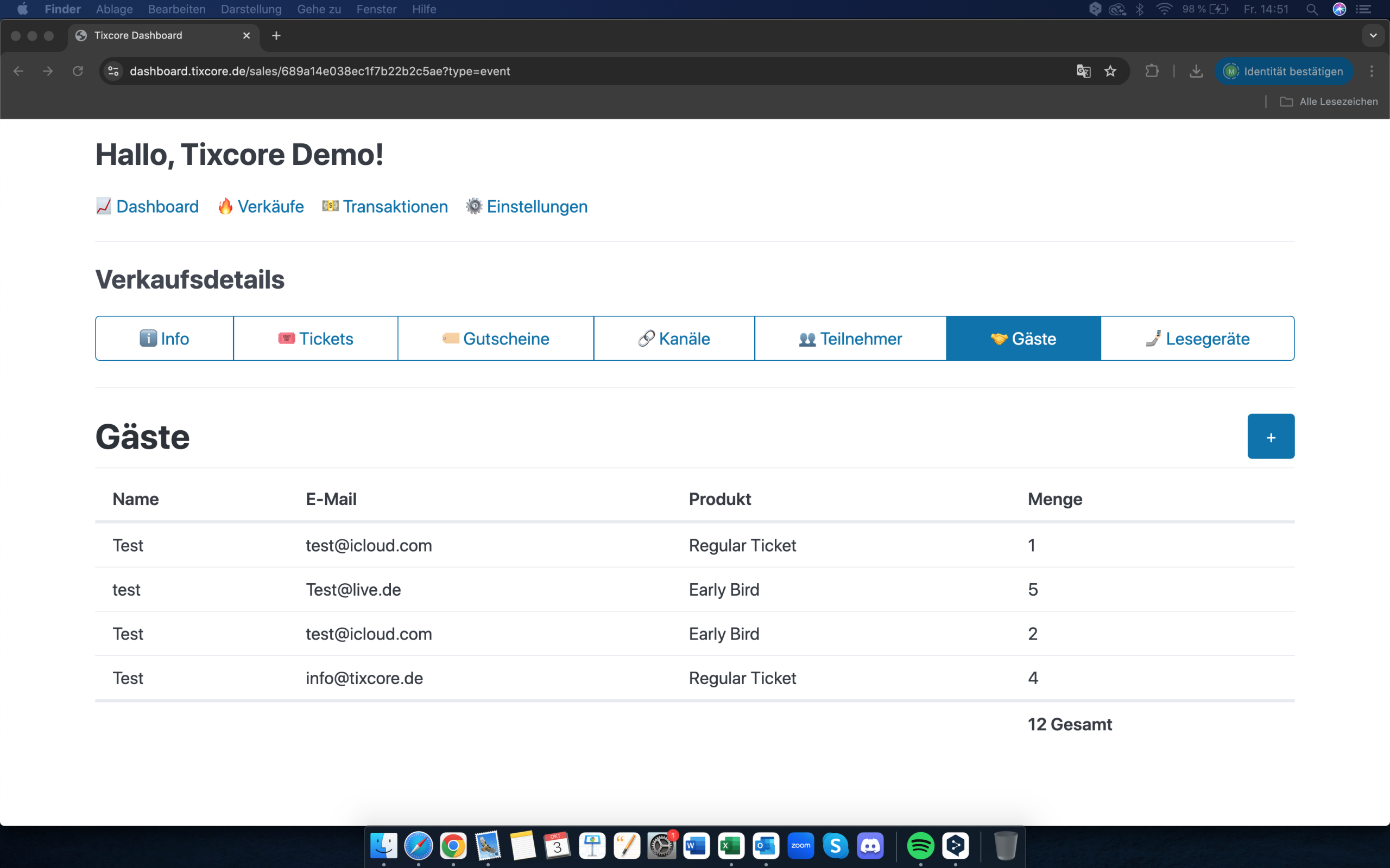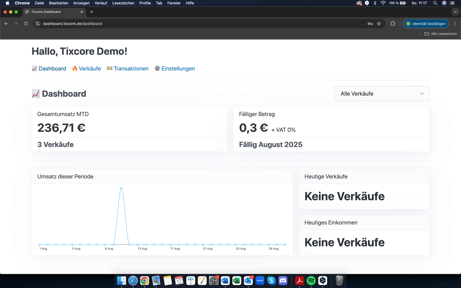 Behalten Sie jederzeit den Überblick: Im Tixcore-Dashboard sehen Sie alle Verkäufe in Echtzeit, analysieren Kundendaten und werten Ihre Umsätze aus. Alle wichtigen Funktionen sind an einem zentralen Ort gebündelt.