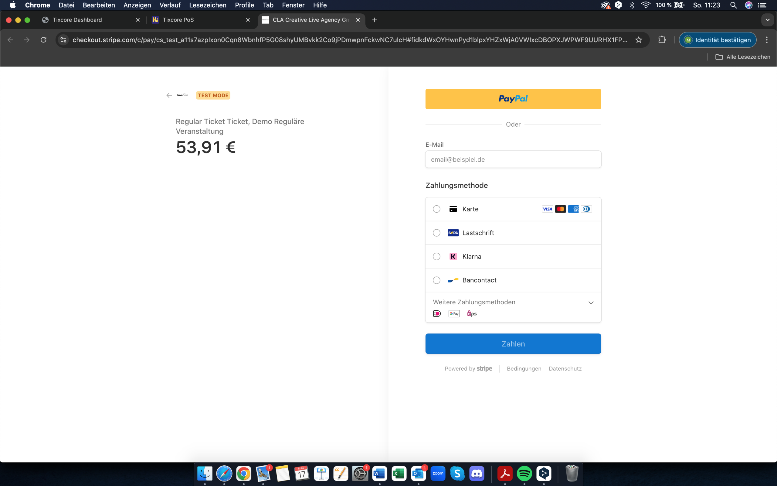 Dank der Integration von Stripe können Sie eine Vielzahl an Bezahloptionen anbieten – von Kreditkarte und PayPal bis zu Sofortüberweisung, Apple Pay und lokalen Zahlungsmethoden. Schnell, sicher und zuverlässig.